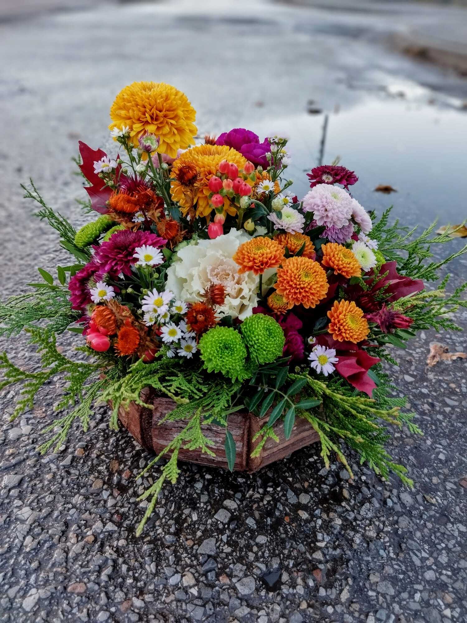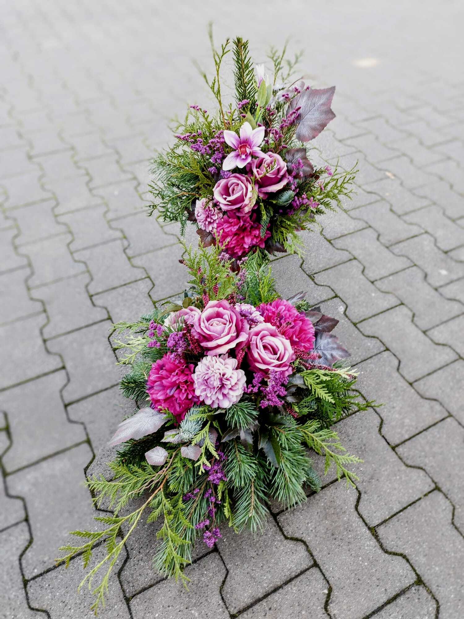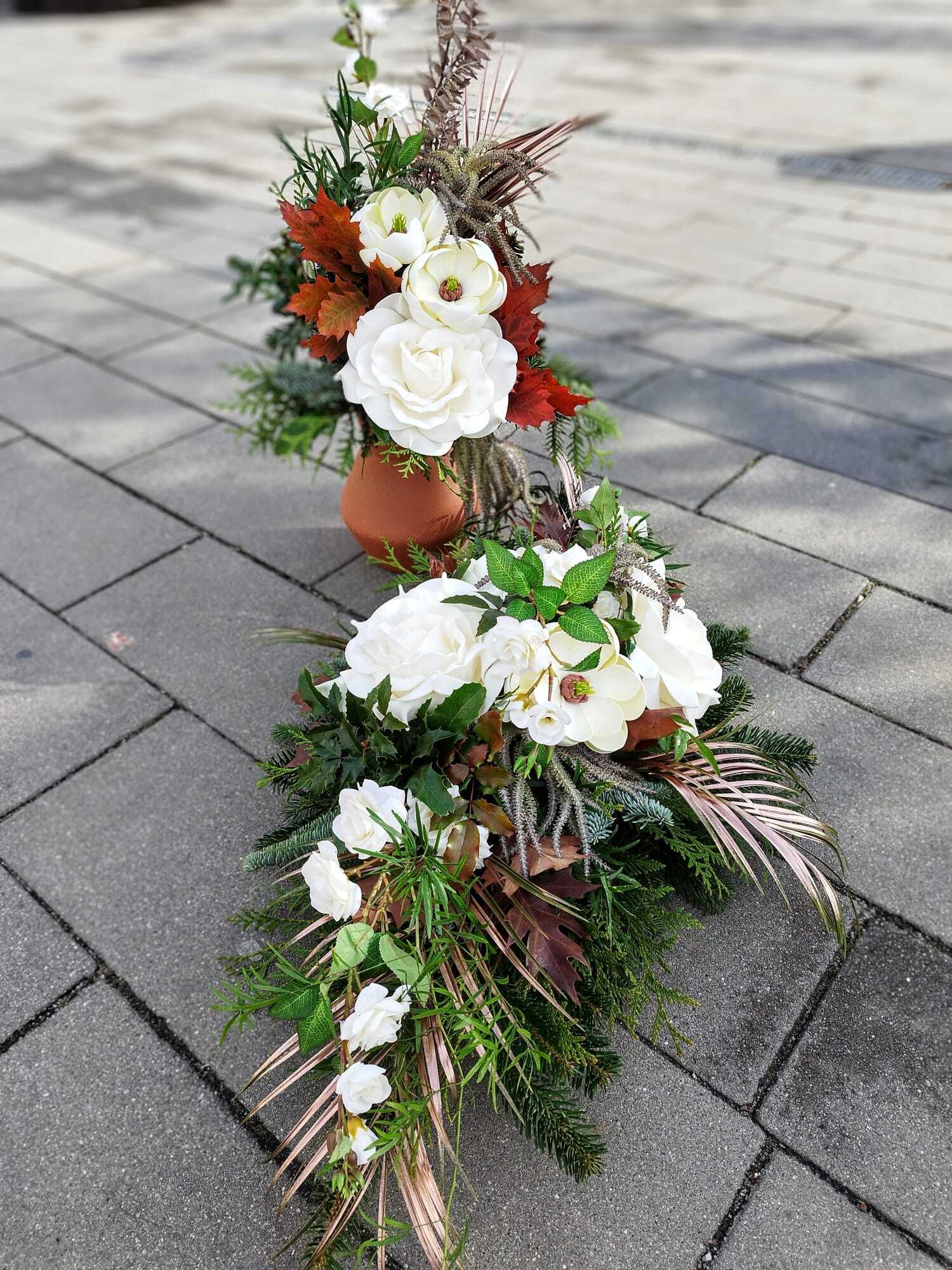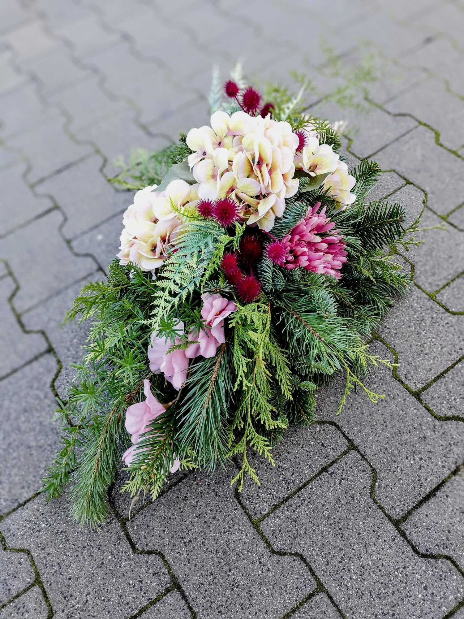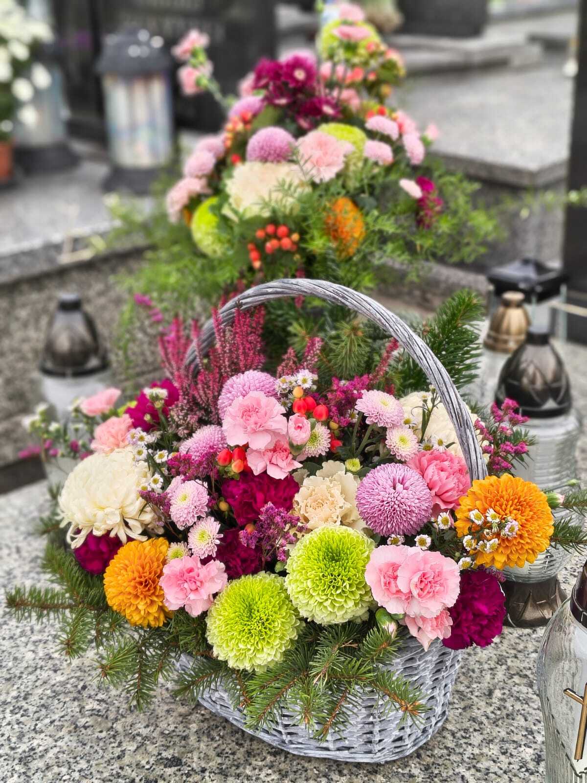 W ofercie znajdują się również dekoracje nagrobne ze świeżych oraz sztucznych kwiatów, przygotowywane z dbałością o estetykę i trwałość.